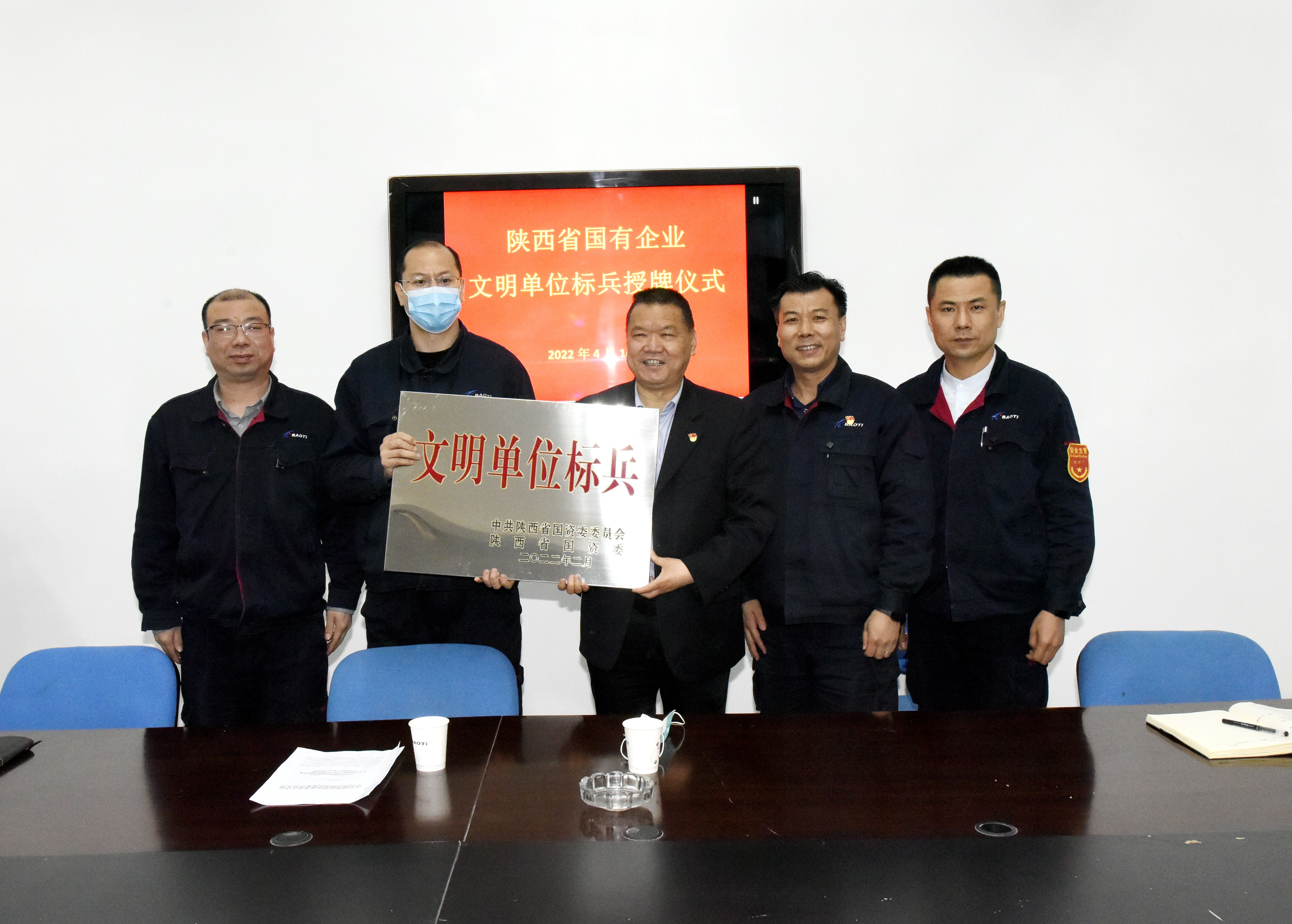 4月14日,公司在板材厂举行了“2021年度陕西省国资委文明单位标兵”授牌仪式。公司党委副书记、工会主席、文明委主任王建超向板材厂授牌并讲话。公司党委宣传部部长荆鑫宣读了省国资委表彰决定。板材厂党总支书记苑晓刚主持授牌仪式。